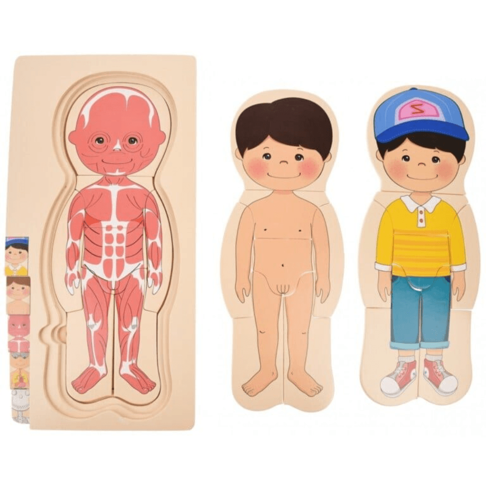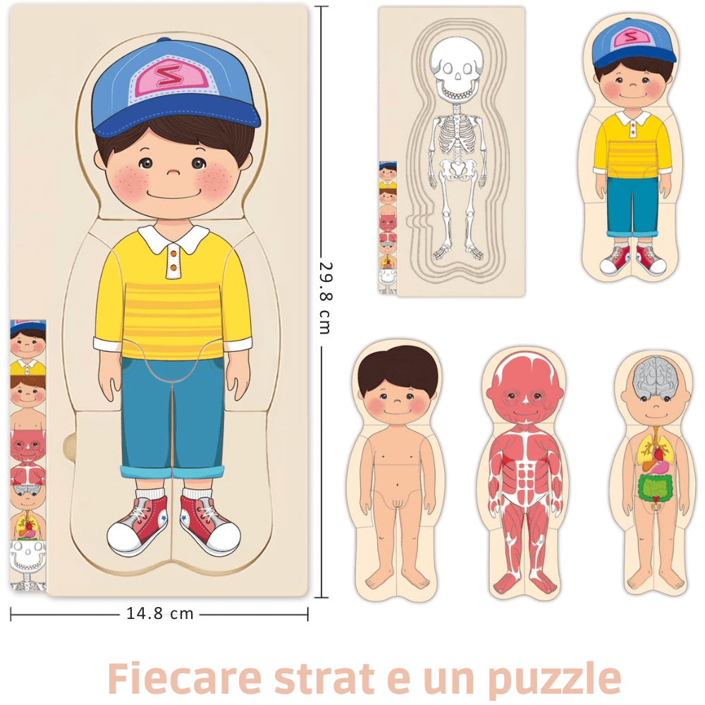 Puzzle Corpul Uman – Baiat, 5 Straturi, 28 Piese din Lemn, 3+ Ani