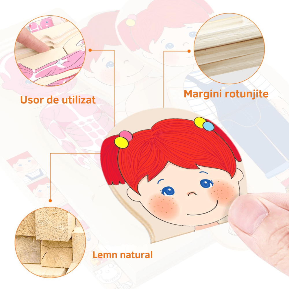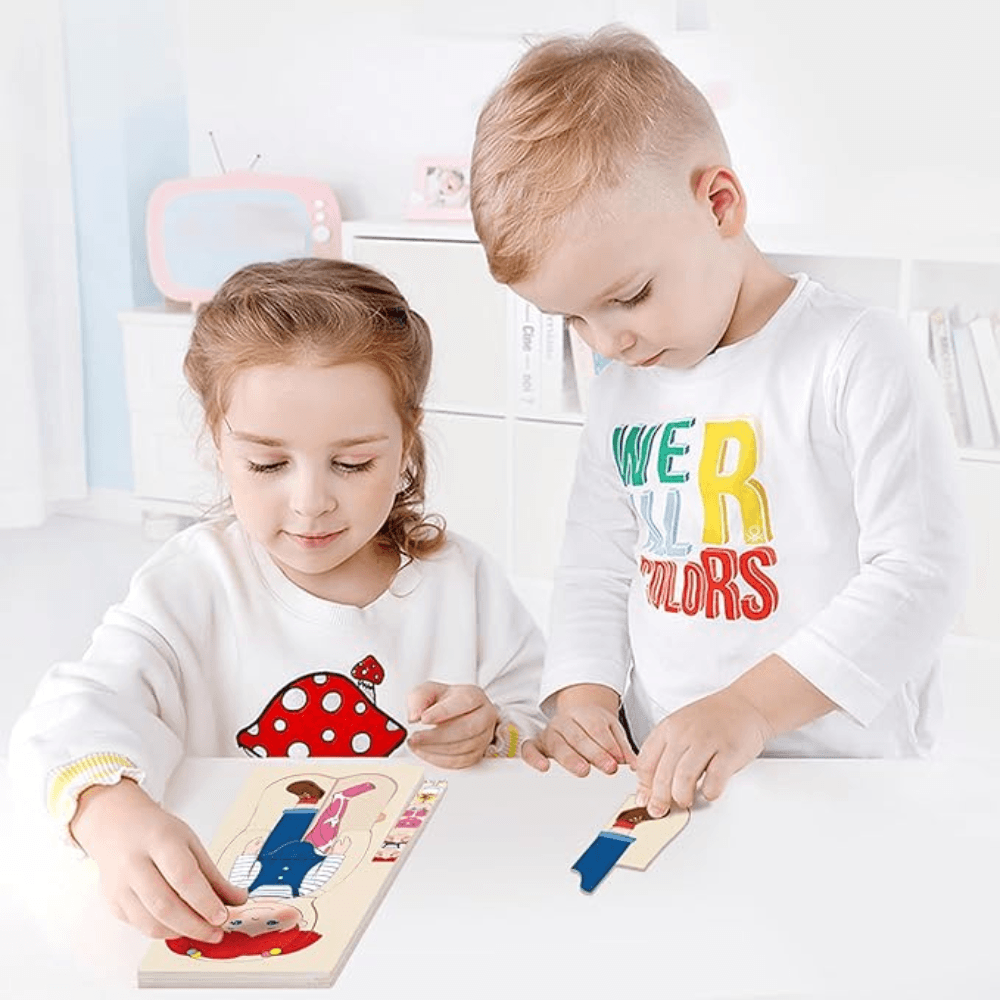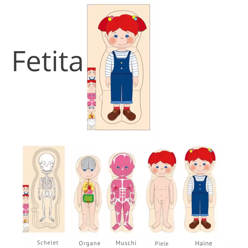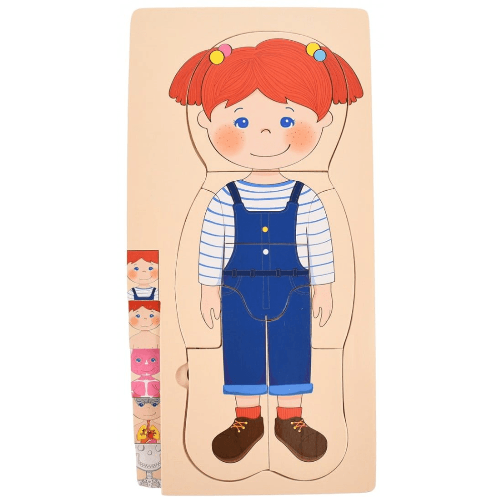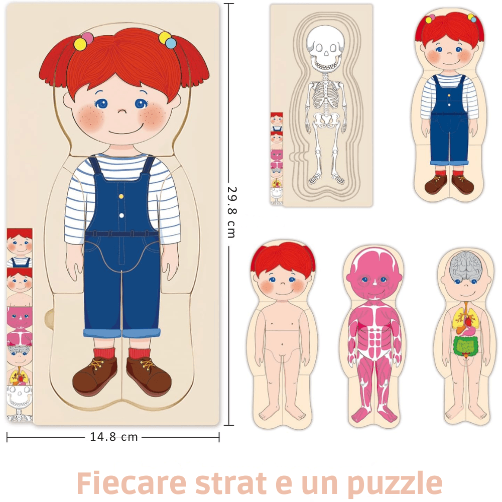 Puzzle Corpul Uman – Fetița, 5 Straturi, 28 Piese din Lemn, 3+ Ani