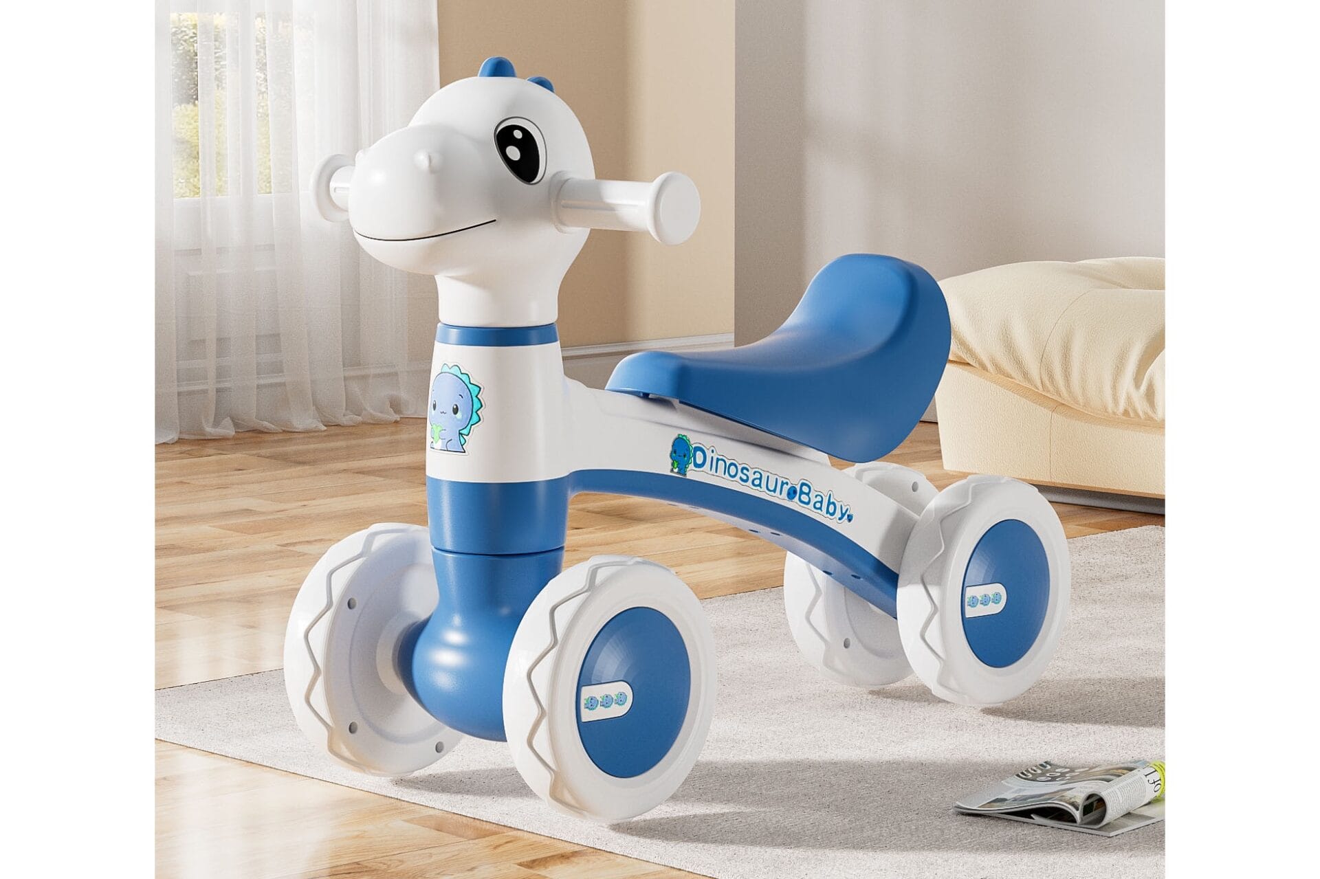 Bicicleta Dinozaur cu 4 Roti fara Pedale pentru Copii, Cu Structura Stabila, Functie cu Muzica si Lumini Interactive, 80 x 58 x 51 Cm, Albastru, Utility One