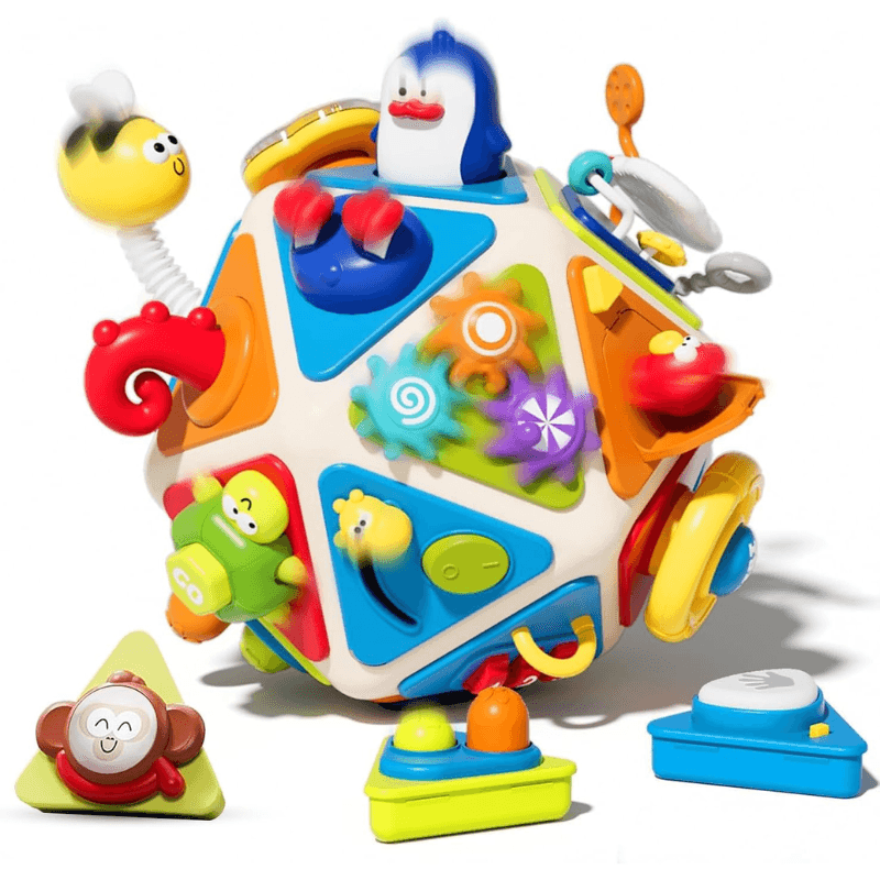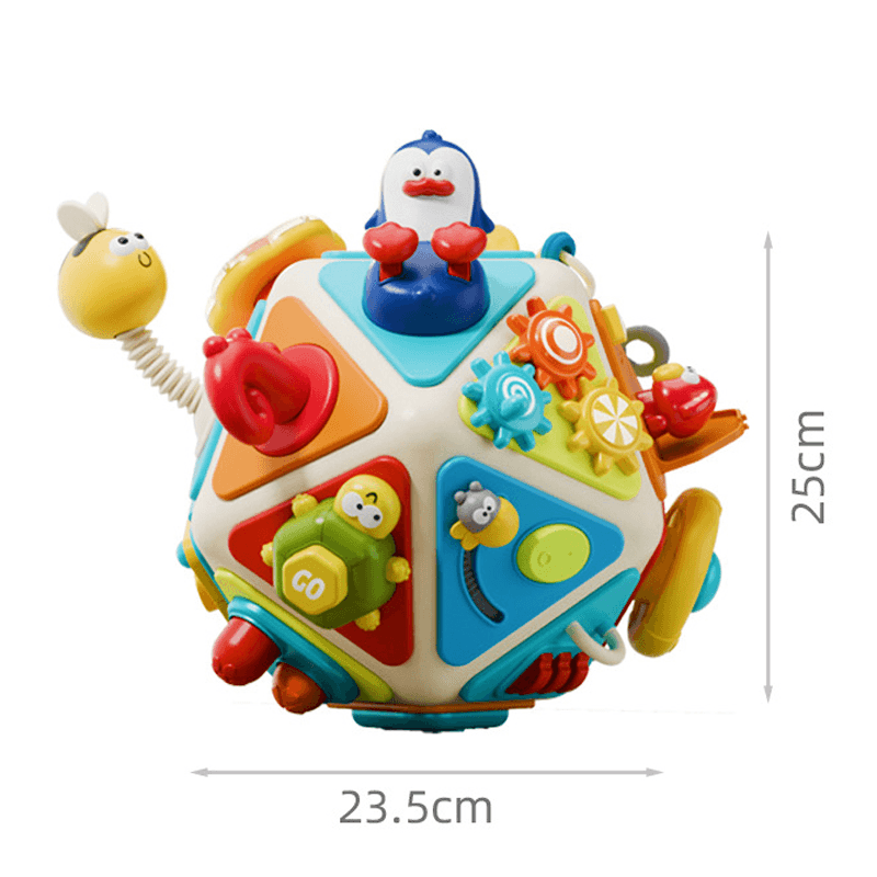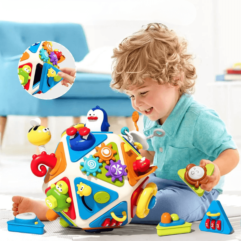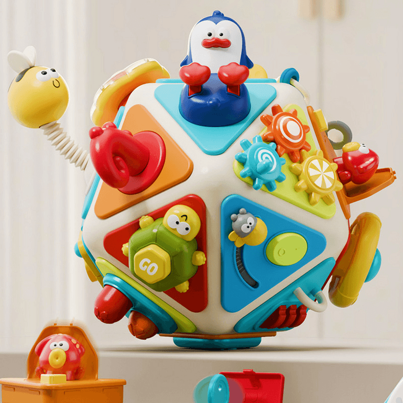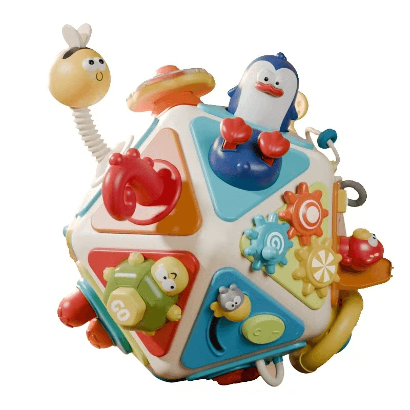 O jucarie complexa si captivanta, care transforma fiecare moment de joaca intr-o experienta educativa completa, interactiva si distractiva. Acest dodecaedru colorat cu 20 de panouri de activitati este mai mult decat o simpla jucarie – este un aliat de nadejde in dezvoltarea cognitiva si emotionala a copilului tau.