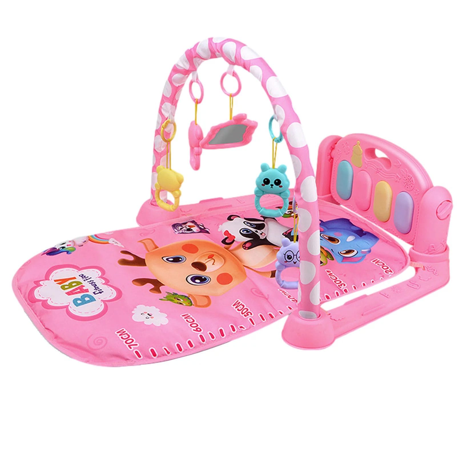 Centru de Activitati pentru Bebelusi, 5 Jucarii de Agatat, Pian Muzical, Cadru Semicerc, Roz Deschis, Animale Terestre, 77x56x42 Cm, + 0 Luni, Utility One