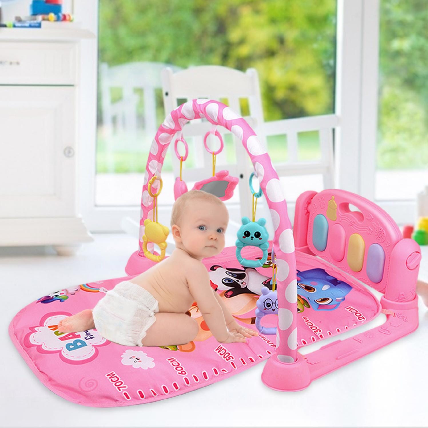 5 jucarii agatate detasabile: Echipate cu 5 jucarii dragute detasabile. Acesti parteneri de jucarie draguti il vor insoti pe bebelus pentru a petrece un timp bun. Exersati miscarile lor brute pentru a-ti mentine copilul in dezvoltare in timp ce se joaca. Recreativ si educational.