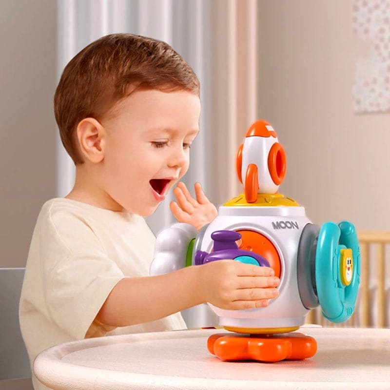 Dezvoltarea Abilitatilor Motorii Fine si Coordonarii: Diversele elemente tactile si senzoriale ale jucariei, cum ar fi rotitele, butoanele si sforile, ajuta la dezvoltarea abilitatilor motorii fine si a coordonarii mana-ochi. Prin apasare, rotire, tragere si impingere, copiii isi exerseaza dexteritatea si invata relatii de cauza-efect.