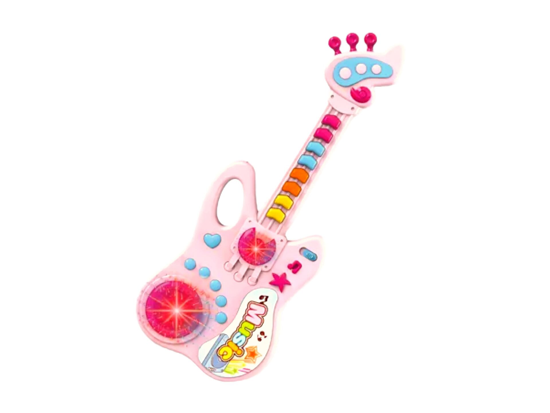 Această chitară minunată pentru copil va deveni instantaneu un hit pentru toți băieții și fetele care doresc să experimenteze magia muzicii, culorilor și luminii! Copiilor le va plăcea să se joace cu această jucărie de chitară muzicală distractivă.