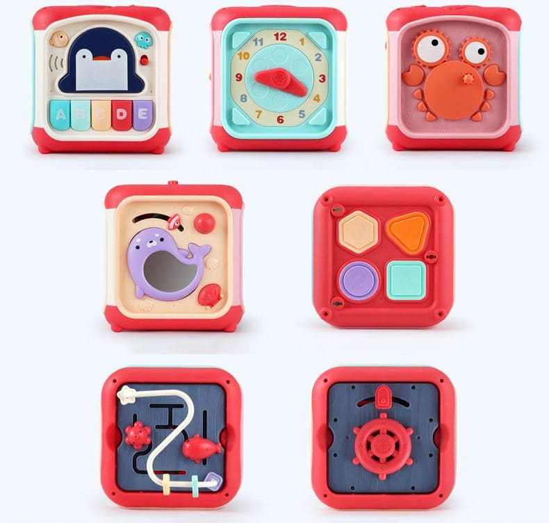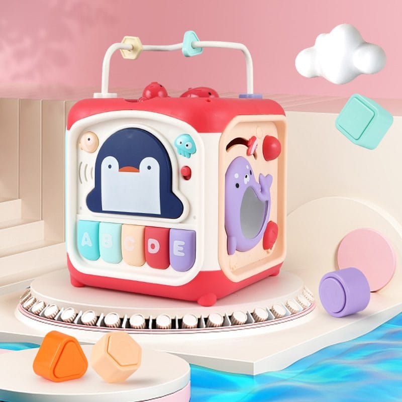 Joc distractiv pentru copii, cubul muzical cu activitati este o jucarie multifunctionala care include nenumarate functii precum: