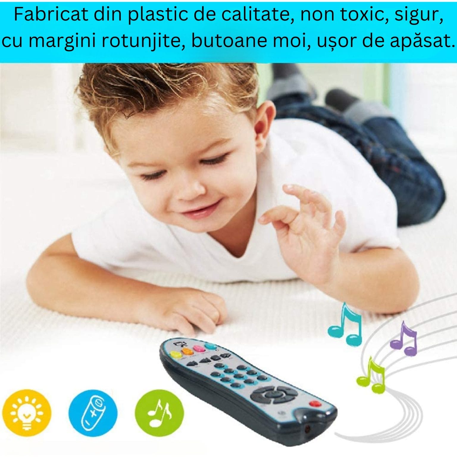 Datorita telecomenzii, copilul va invata sunete noi si va incepe sa invete noi limbi: engleza, spaniola si franceza.