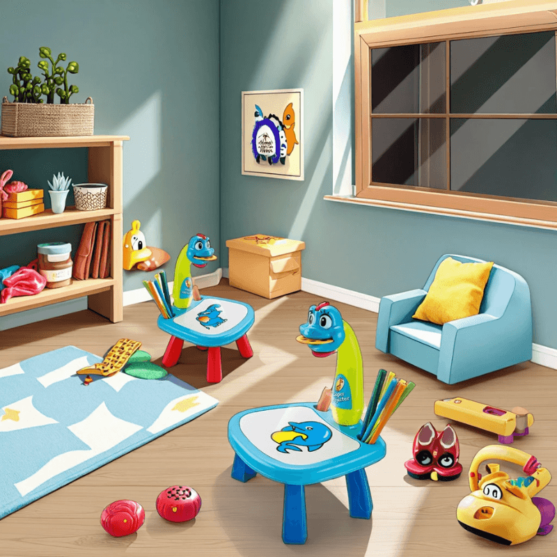 Incurajeaza creativitatea, invatarea si bucuria desenului cu Masuta cu Proiector Dinozaur LUDIRO – Jucaria Educativa Ideala pentru Copii Curiosi si Visatori!