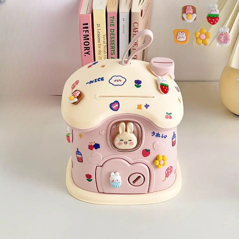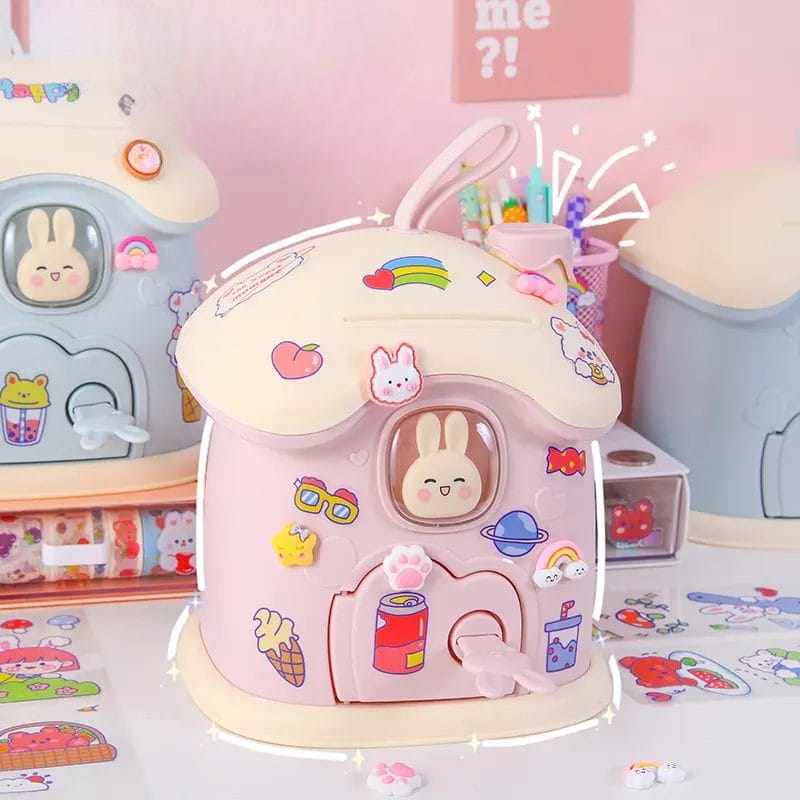 Pusculita pentru Copii cu Cheie, Stickere de Personalizare Incluse, Iepuras, Forma Ciuperca, 20x18x15 Cm, Roz, + 3 Ani, Utility One