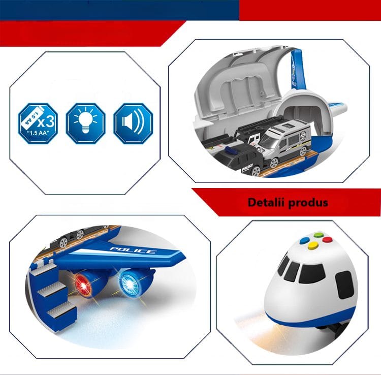 Avionul de jucarie de tip transportator de masinute este jucaria perfecta pentru fiecare copil care viseaza sa fie pilot.