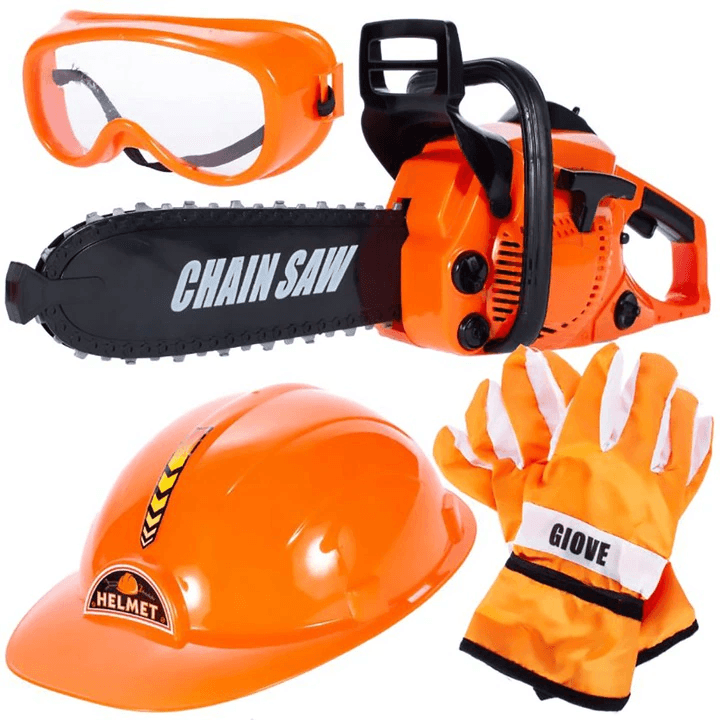 Set de Unelte de Jucarie Utility One, Drujba si Echipament de Protectie, Lant care se Roteste, Sunete Realiste, Portocaliu Negru, + 3 Ani