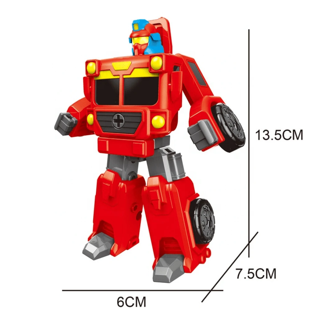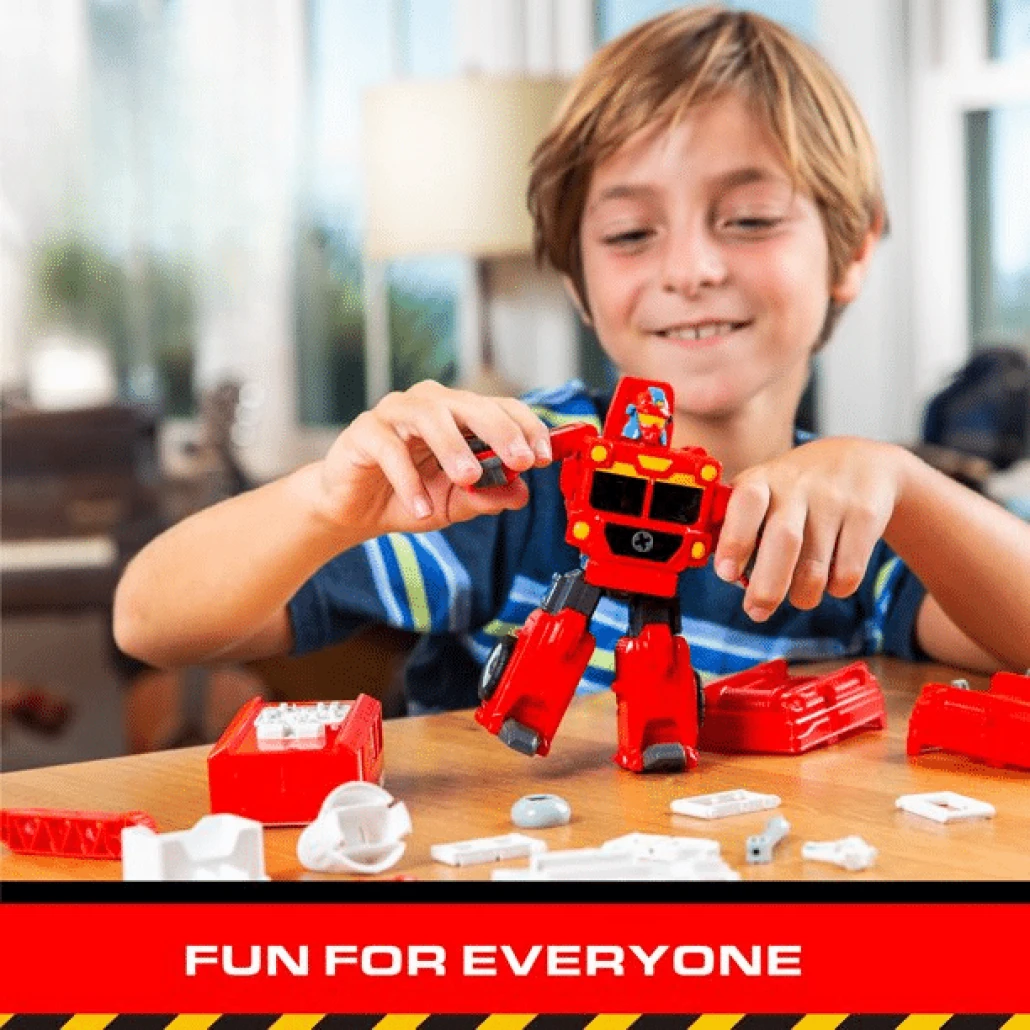 Utilizați șurubelnița inclusă pentru a vă transforma cu ușurință mini-robot de jucărie in 3 modele diferite de mașini de pompieri - Camion de pompieri, Camion de ridicare sau Camion cu braț.