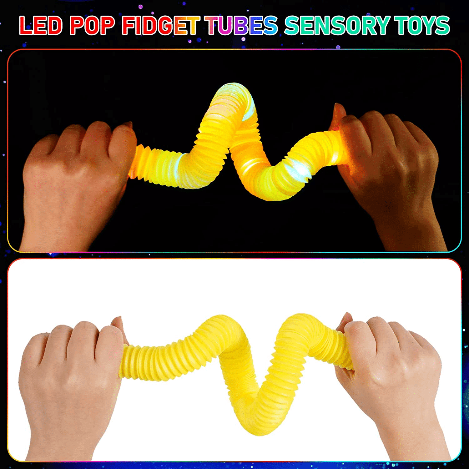 Set 12 Tuburi Antistres, cu Lumini LED Interactive, Fidget Pop Tube, 20x2 cm, Utility One