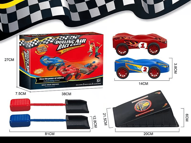 Set 2 Lansatoare Masinute cu Presiunea Aerului, Competitie Duel, 2 Masinute, Trambulina, Interior si Exterior, Albastru Rosu, + 5 Ani