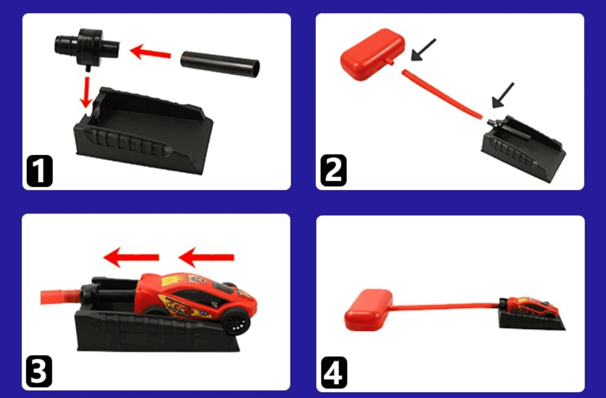 2 recenzii pentru Set 2 Lansatoare Masinute cu Presiunea Aerului, Competitie Duel, 2 Masinute, Trambulina, Interior si Exterior, Albastru Rosu, + 5 Ani