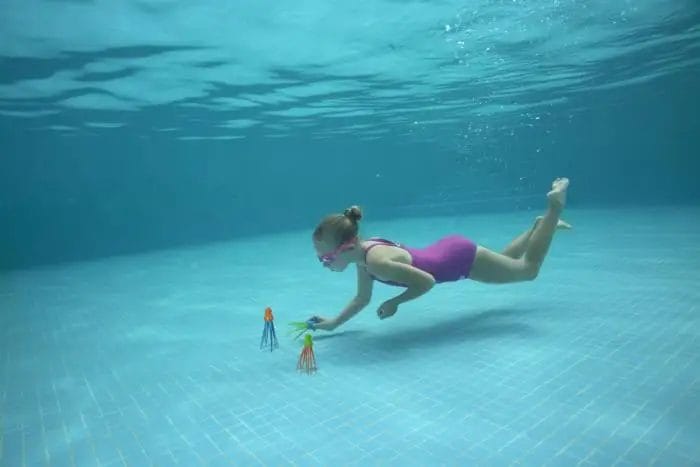 Promoveaza miscarea: Copiii se vor distra ore in șir, caracatitele sunt grozave pentru a alerga la piscină și copiii pot chiar să incerce să le prindă inainte de a ajunge la fund pentru provocarea suplimentară.