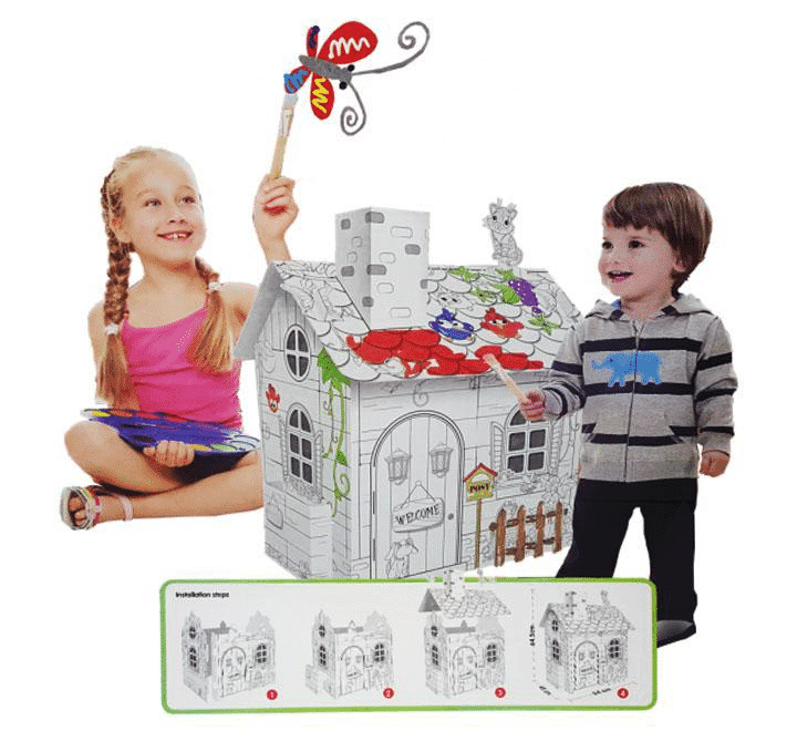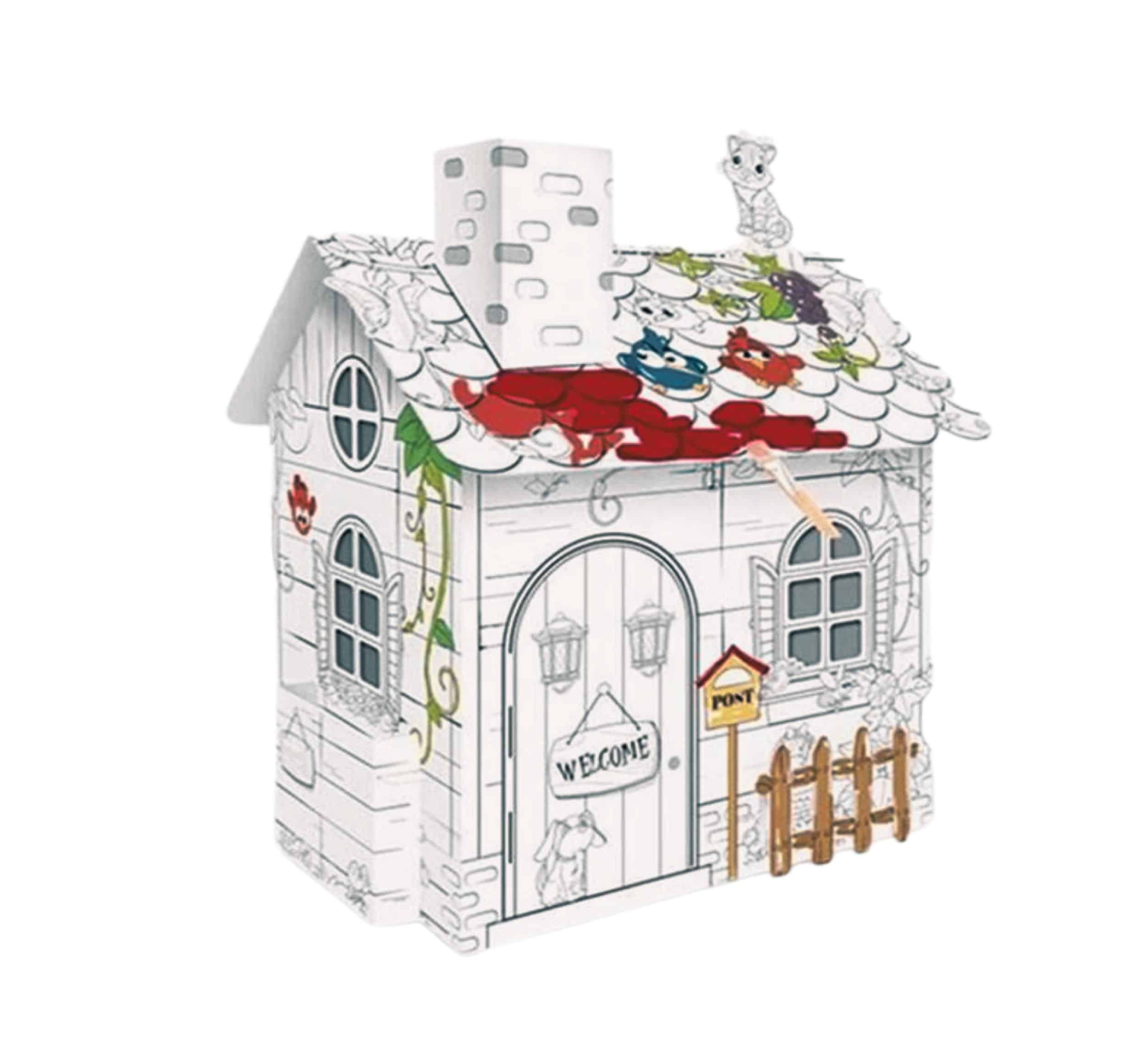 Casuta de colorat din carton reprezinta un proiect cu care sa stimulati creativitatea copilului dumneavoastra.