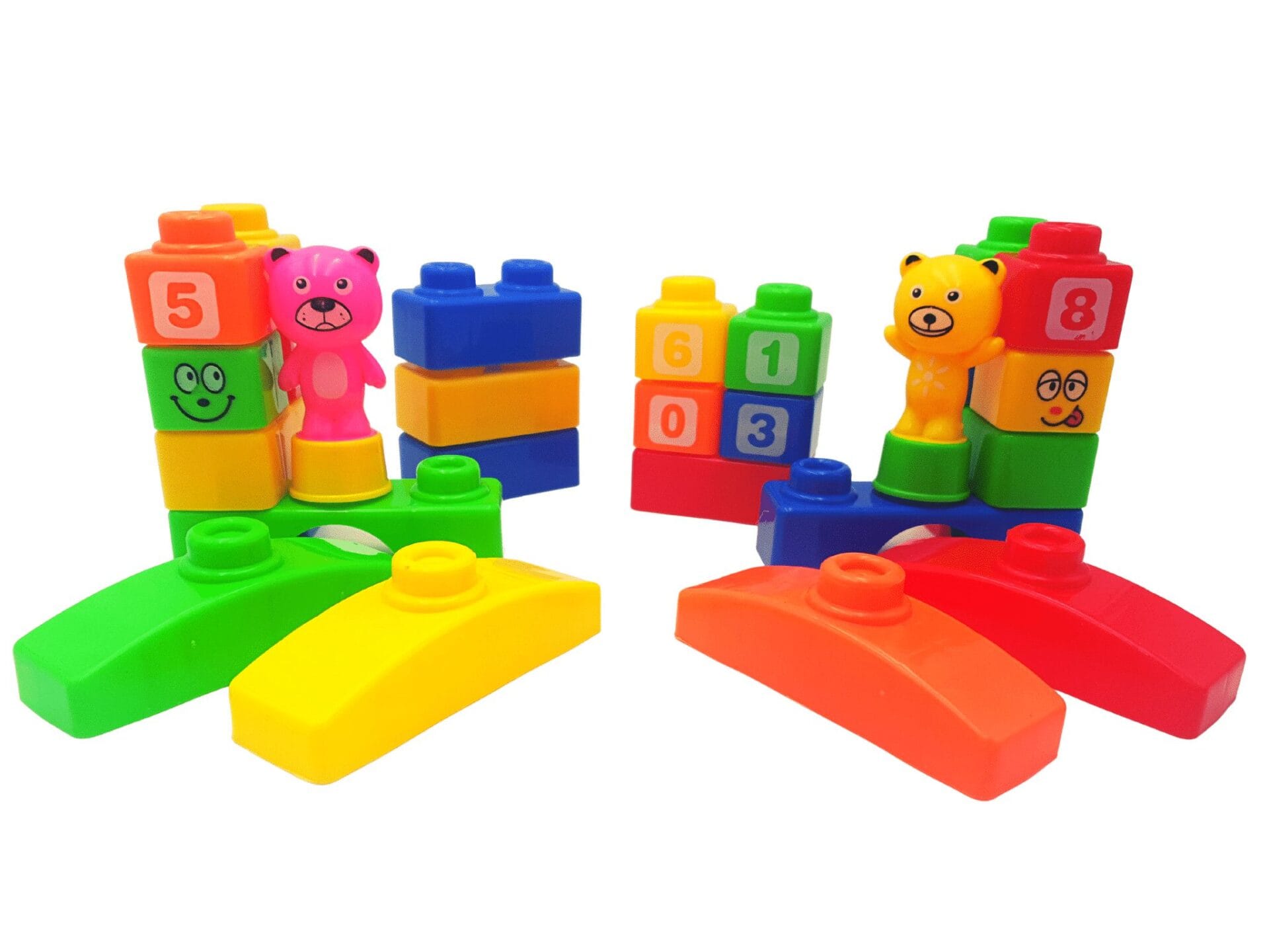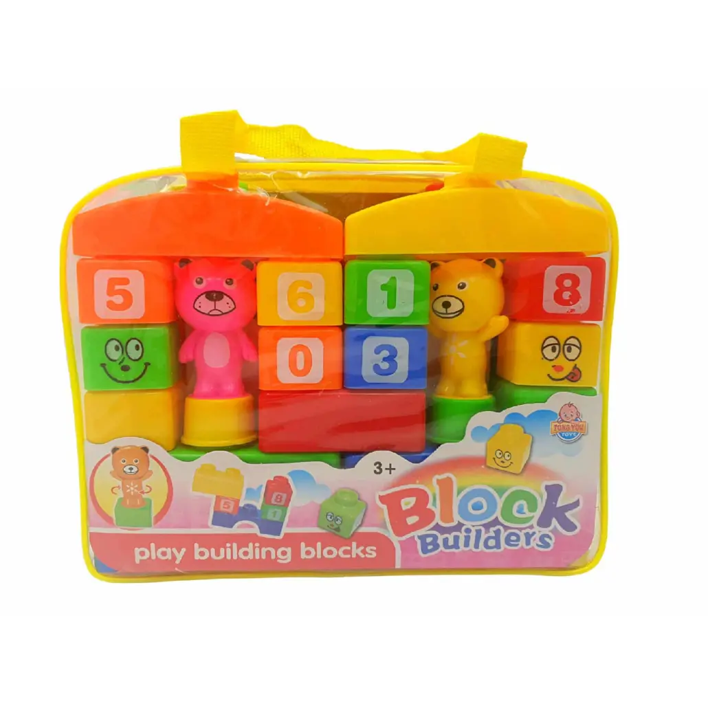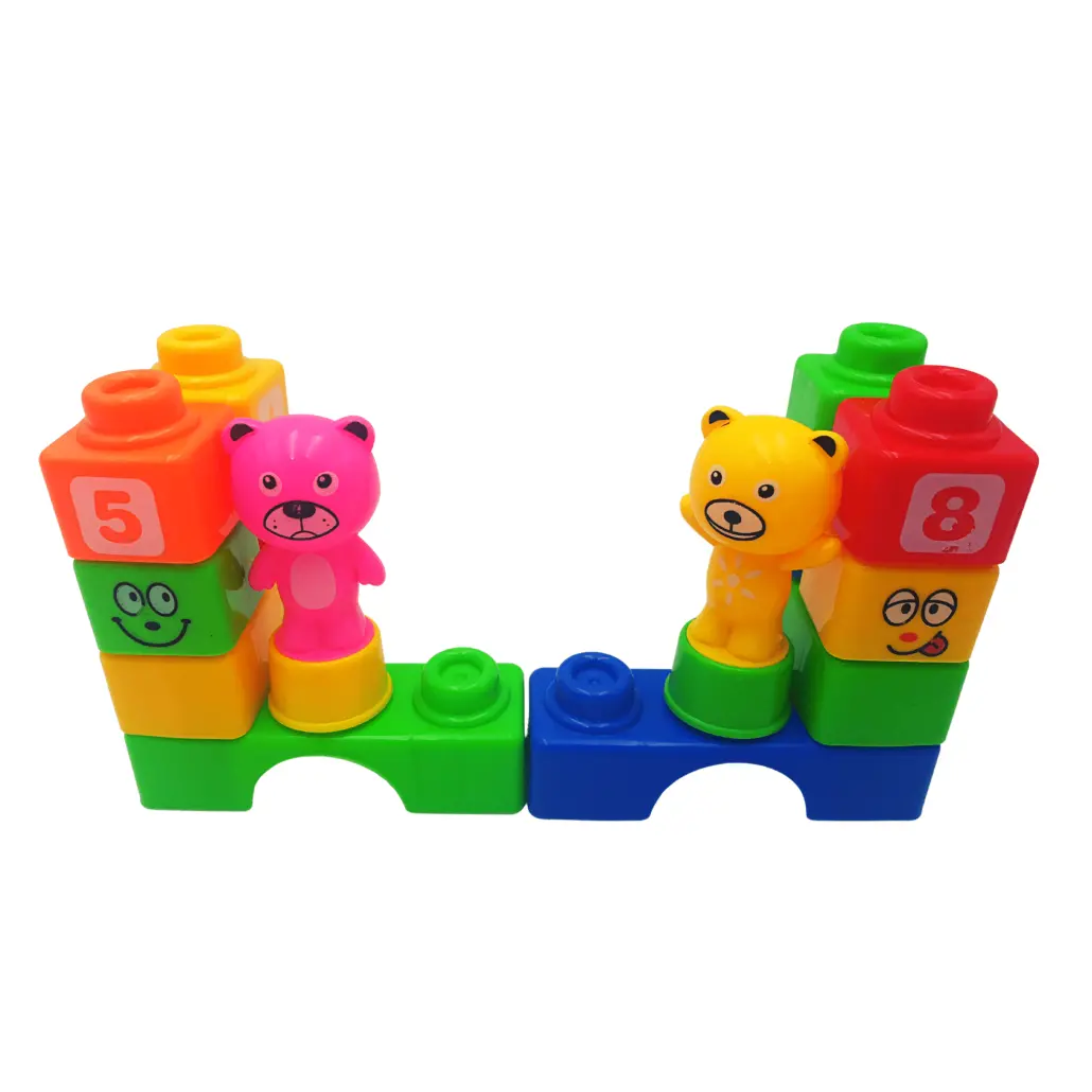 Set de Constructie Cuburi cu Cifre si Doua Figurine Ursulet, 28 de Piese, +3 ani