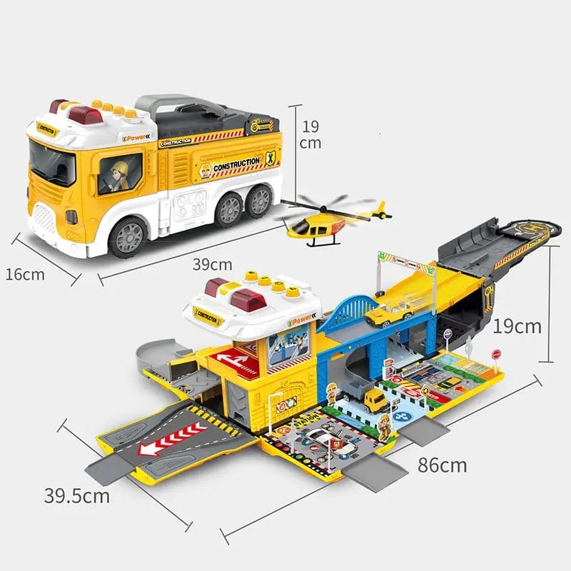 Pentru micii constructori pasionati de masini si scenarii de lucru, acest set de joaca ofera o experienta captivanta si educativa. Camionul de constructii transformabil se deschide si devine un santier mobil complet echipat, unde copiii pot explora lumea constructiilor prin jocuri de rol interactive.