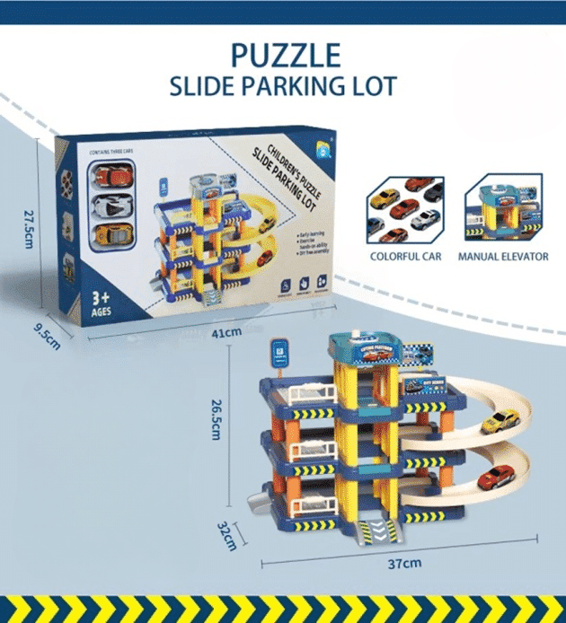 1 recenzie pentru Set de Joaca Parcare pentru Masinute, 3 Nivele, Coborare in Spirala, Lift Manual, 2 Masinute, 37×26.5×32 Cm, + 3 Ani