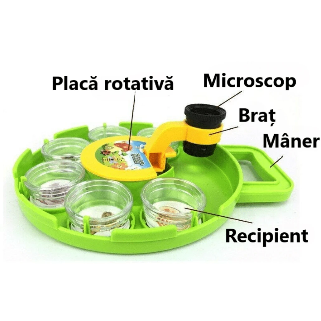 1 recenzie pentru Set Educativ, Microscop Detasabil, Observator de Insecte, 6 Recipiente, Placa Rotativa, 22.5×18.5×6 Cm, + 8 Ani