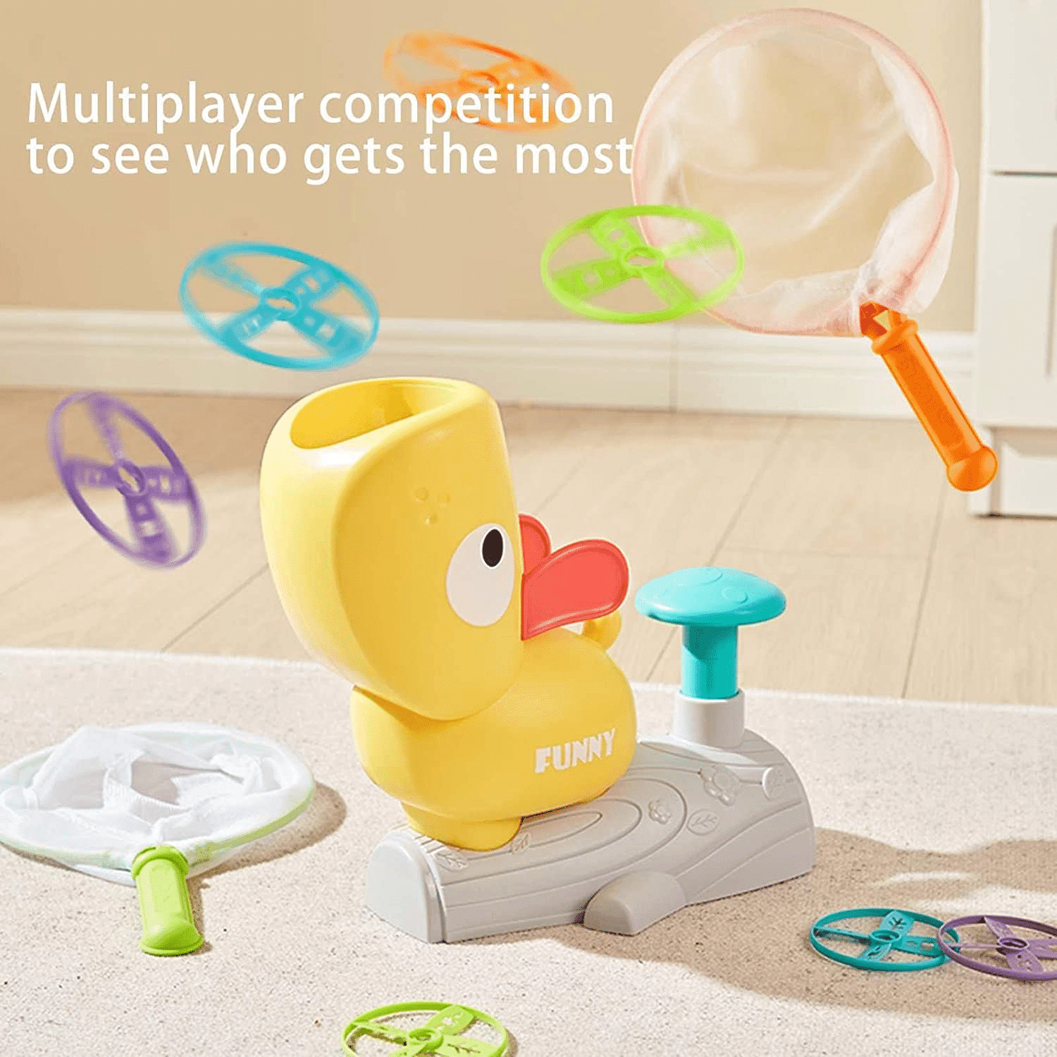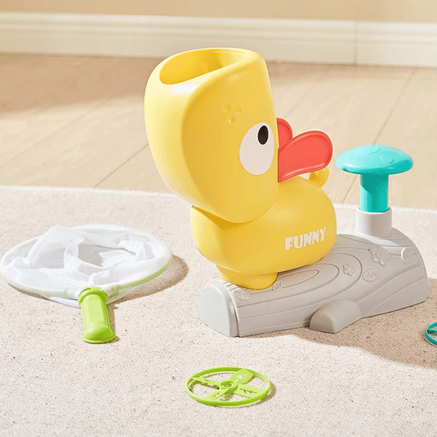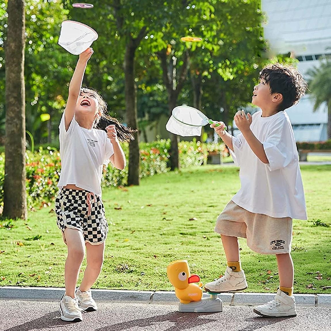 Ușor de jucat: Puneți discurile in lansator, apoi apăsați pedala și discurile se vor lansa. După ce sunt lansate, se pot prinde cu plasa. Copiii se pot juca independent sau cu alți copii sau parteneri.
