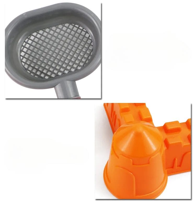 5.Gama larga de utilizari: 4 jucarii de nisip cu castel pot fi folosite in orice mediu de joaca. Potrivit pentru plaja, gradina, groapa de nisip, piscina sau chiar si in interior ca jucarie de baie.