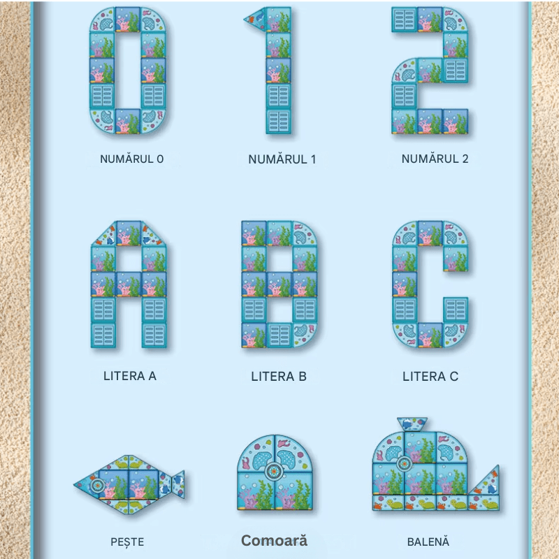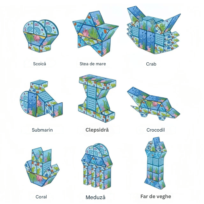 - Creativitate fara limite: Setul permite constructia de animale marine, cifre, litere, cladiri fantastice, personaje din adancuri si decoruri magice. Totul este posibil.
