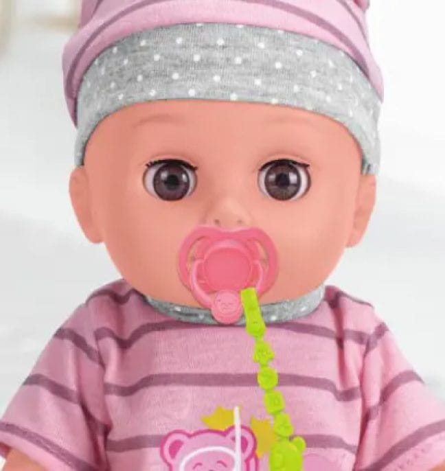 Păpușa scoate 12 sunete – de la chicoteli și scâncete, la fraze simple – iar copilul este încurajat să răspundă. Prin repetarea sunetelor și inventarea de dialoguri, copilul își îmbunătățește vocabularul și capacitatea de exprimare. Jocul cu păpuși este o metodă recunoscută de dezvoltare a limbajului, recomandată inclusiv de specialiști în educație timpurie.