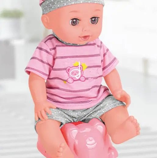 3 recenzii pentru Set Papusa Bebelus Multifunctionala Care Vorbeste, Bea si Face Pipi, 12 Sunete, Olita, Suzeta, Farfurie si Tacamuri, Biberon, Papucei, 30 Cm, + 3 Ani