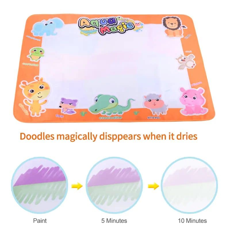 Copilul tau va picta doar cu apa. Suprafata mare a covorasului ofera copilului mult spatiu pentru a se arata.