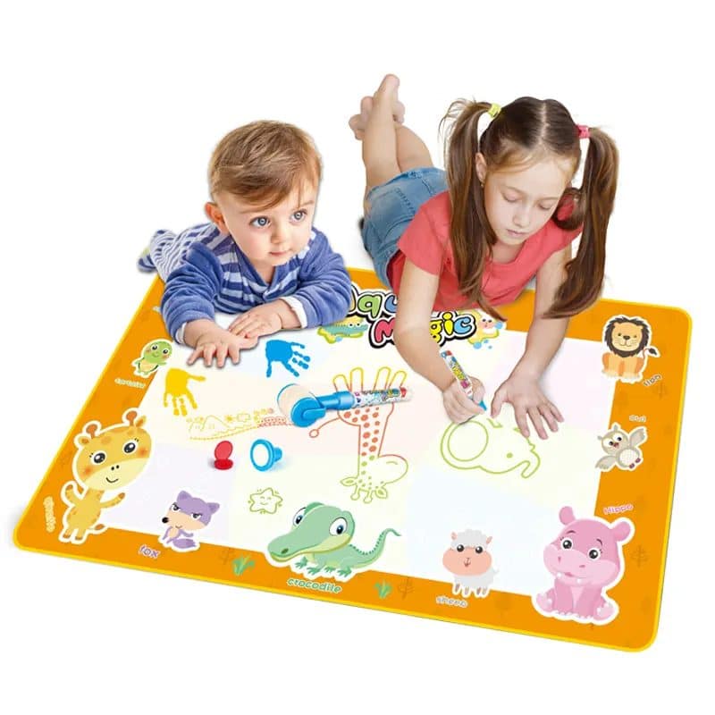 Nu aveti nevoie de creioane, markere sau vopsele pentru a desena pe covoras. Tot ce trebuie sa faceti este sa umpleti stiloul atasat la set cu apa.
