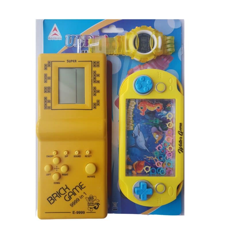 Home Varsta 3-4 Ani Set Trei Jucarii Interactive, Tetris, Joc cu Cerculete in Apa si Ceas de Mana, Galben, + 3 ani