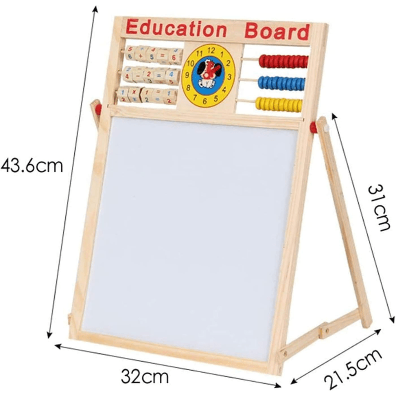 Tabla Educativa cu 2 Fete din Lemn Ludiro, Cu Abac, Ceas, Alfabet si Cifre, Marker si Creta, 43.6x32 Cm