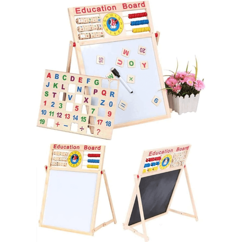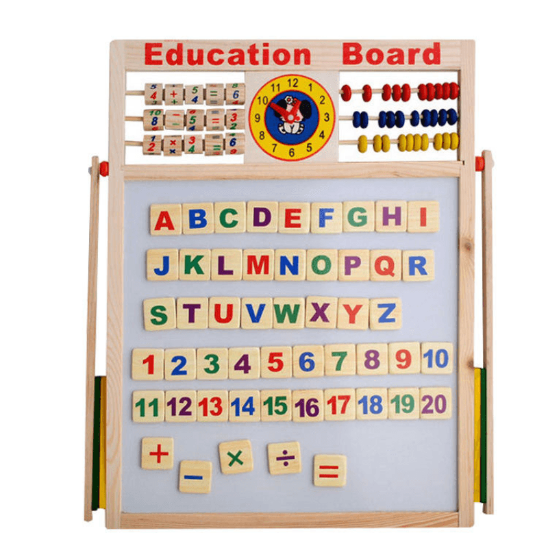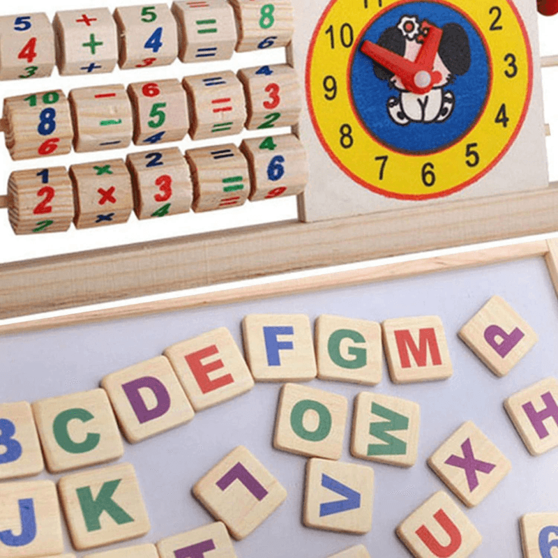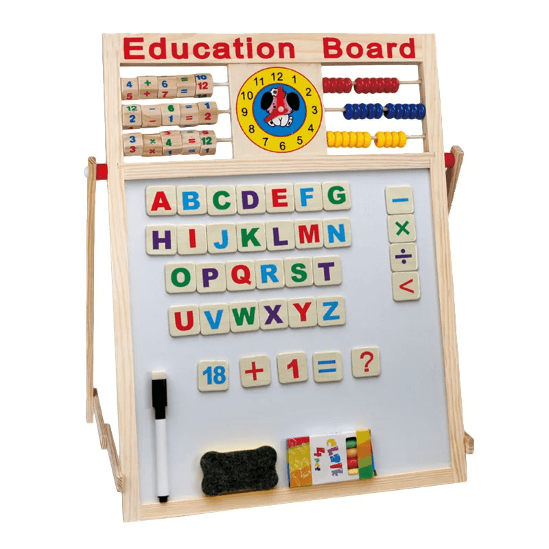 Cauti o jucarie care sa-l atraga departe de ecran si sa-l apropie de litere, cifre si primele calcule? Tabla educativa 2-in-1 din lemn transforma camera copilului intr-o mica clasa prietenoasa, in care alfabetul devine o joaca, iar matematica – un puzzle colorat. Copilul scrie, sterge, potriveste placute, muta margelele pe abac si invata sa citeasca ora – natural, curios, vesel.