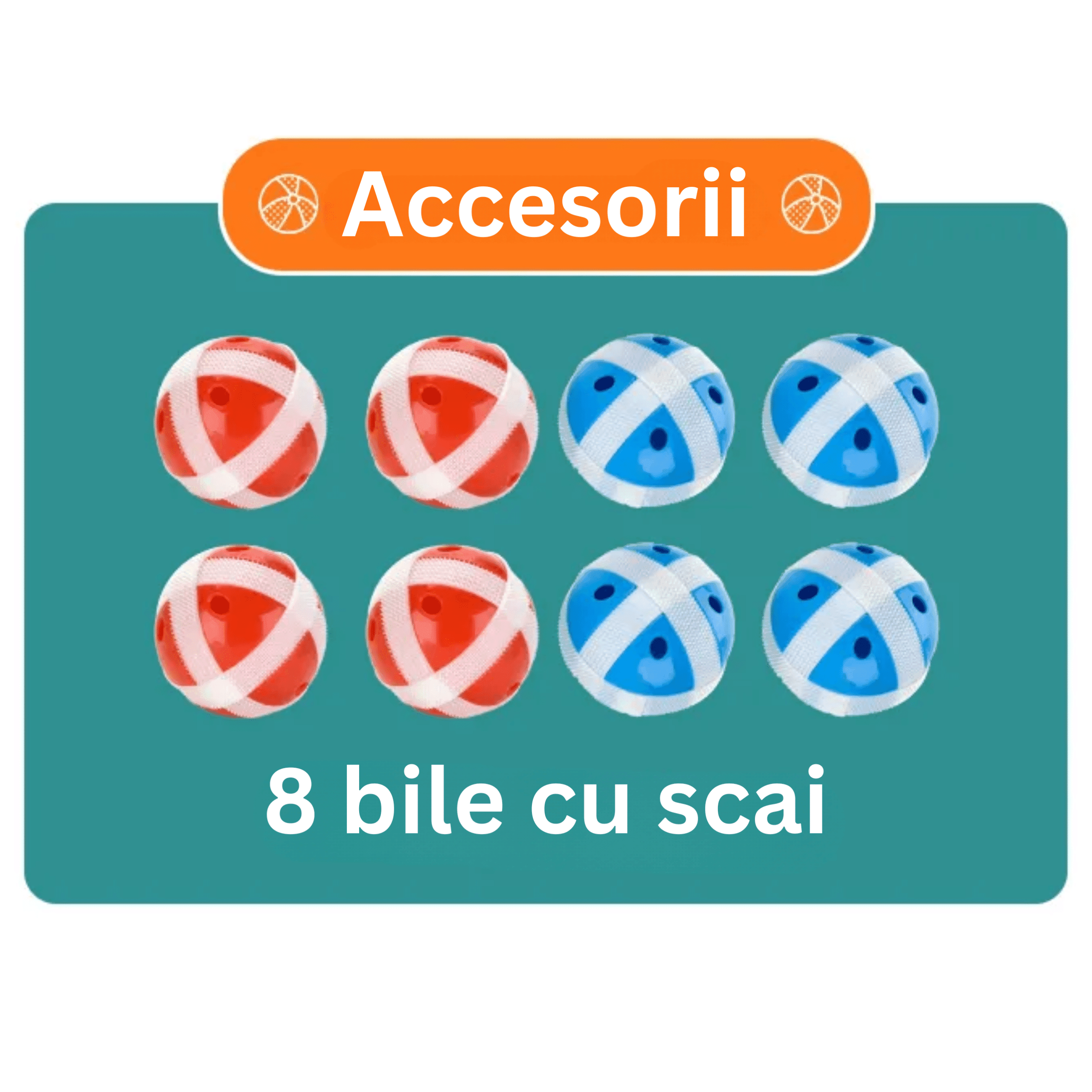 8 mingi cu scai: 4 albastre + 4 roșii