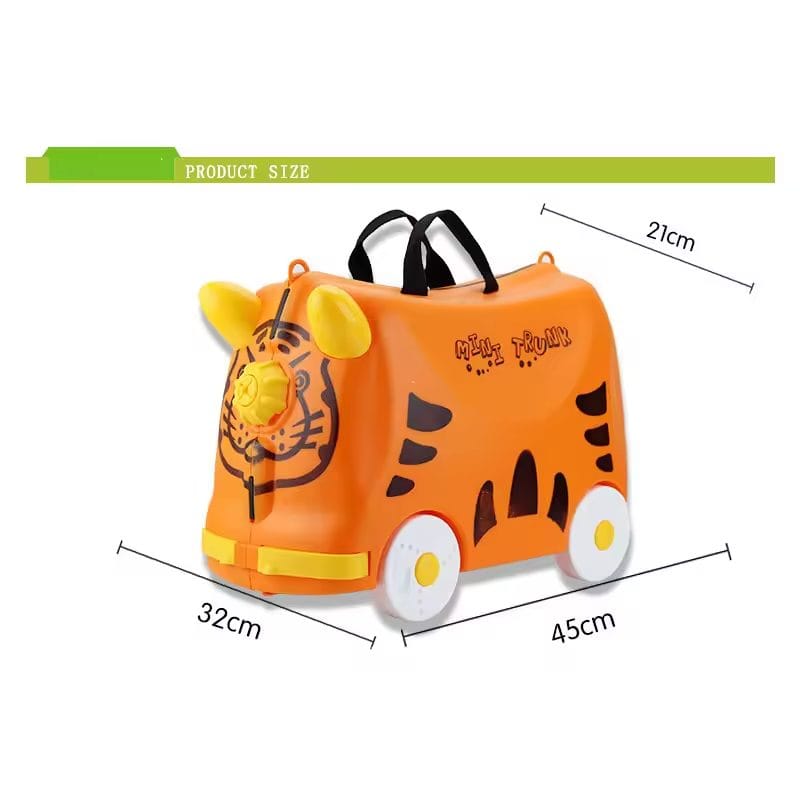 Transformati calatoriile copilului dumneavoastra intr-o aventura plina de distractie si confort cu Trolerul Ride On pentru copii. Acest troler inovativ si jucaus, proiectat special pentru cei mici cu varsta de peste 3 ani, combina utilitatea unui troler cu bucuria de a-l folosi ca vehicul de plimbare. Cu un design atragator in forma de tigru portocaliu si caracteristici functionale remarcabile, acest troler este perfect pentru calatoriile in familie, vacante si excursii de weekend.