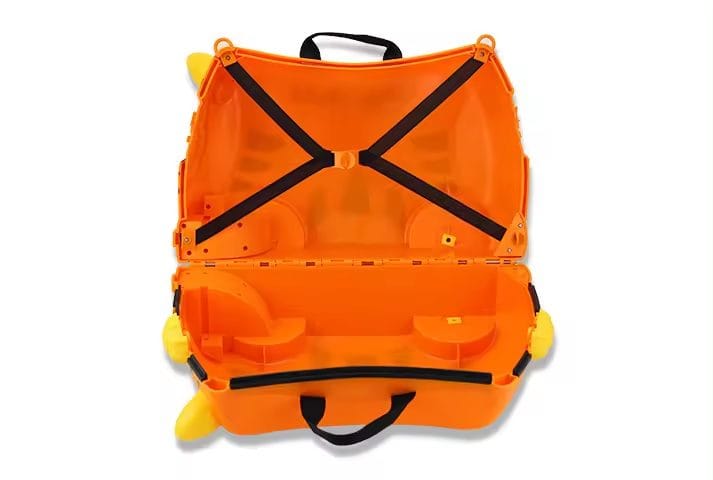Trolerul Ride On de la Utility One se evidentiaza prin designul sau vesel si prietenos. Formele rotunjite si culorile vibrante, inspirate de un tigru portocaliu, atrag imediat atentia copiilor, facandu-i entuziasmati sa isi impacheteze lucrurile pentru calatorie. Dimensiunile compacte de 45x32x21 cm sunt perfecte pentru mainile si nevoile celor mici, oferind un spatiu generos de 18 litri pentru jucarii, haine si alte obiecte esentiale.