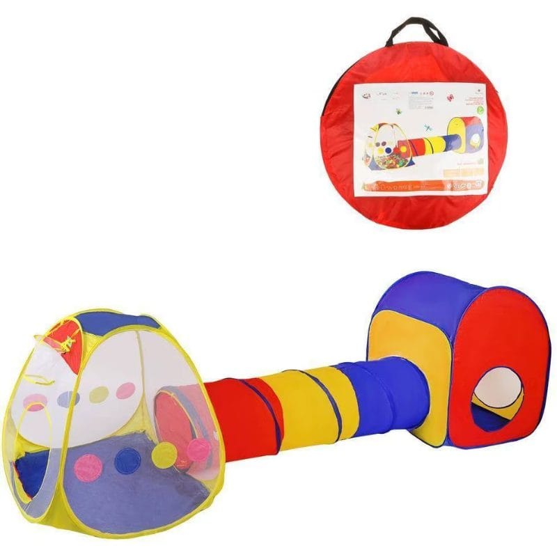 Descopera bucuria si magia copilariei cu acest Tunel de Joaca Colorat 3-in-1, o alegere ideala pentru parintii care doresc sa ofere celor mici o experienta interactiva, educativa si plina de veselie. Acest set de joaca este format dintr-un cort de joaca pop-up, un tunel conectiv si o caseta de joaca care pot fi utilizate impreuna sau separat. Produsul este conceput pentru a stimula imaginatia, a incuraja miscarea fizica si a dezvolta abilitati esentiale la copii, intr-un mod distractiv si sigur.