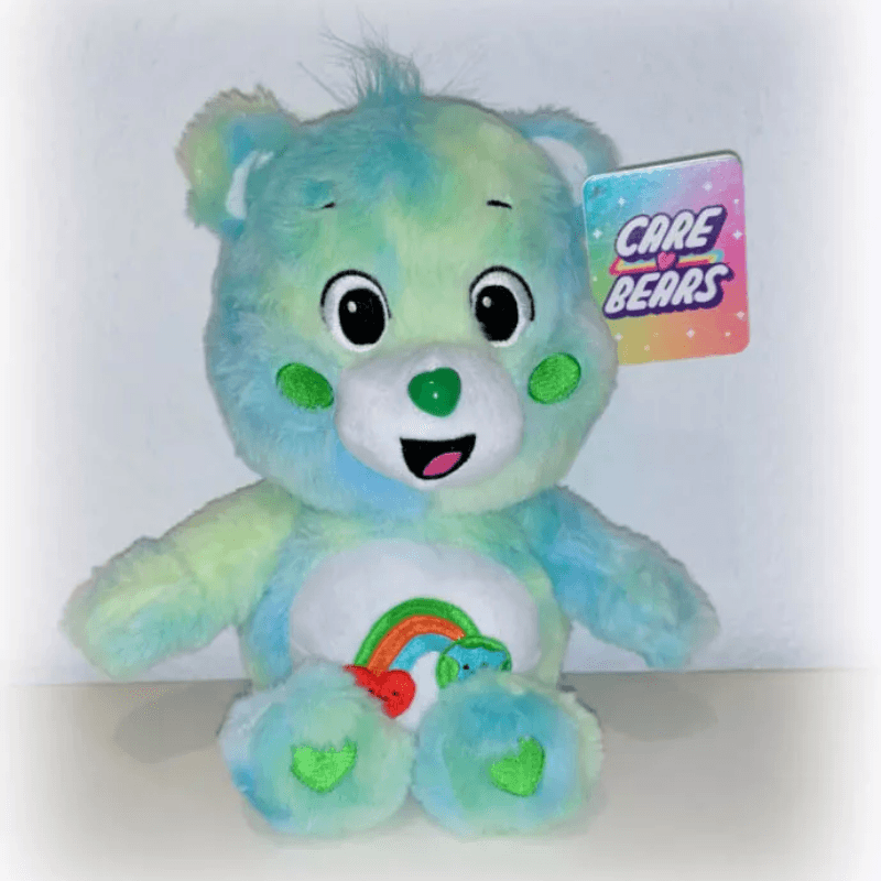 Când vrei să aduci în casa ta mai multă bucurie și puțin… noroc, Good Luck Bear este alegerea perfectă. Verde ca speranța și prietenos din fire, ursulețul din colecția Care Bears cucerește instant mânuțele mici cu blănița ultra-moale și burtica lui cu simbolul clasic al trifoiului cu patru foi (unele ediții pot avea un motiv alternativ, precum un curcubeu). Dimensiunea de 25 cm îl face ideal pentru îmbrățișări, somn, călătorii și joacă de rol.