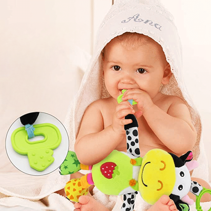 Are atat accesorii de dentitie, cat si inle zornaitoare. Materialul textil este de cea mai buna calitate, extrem de rezistent.
