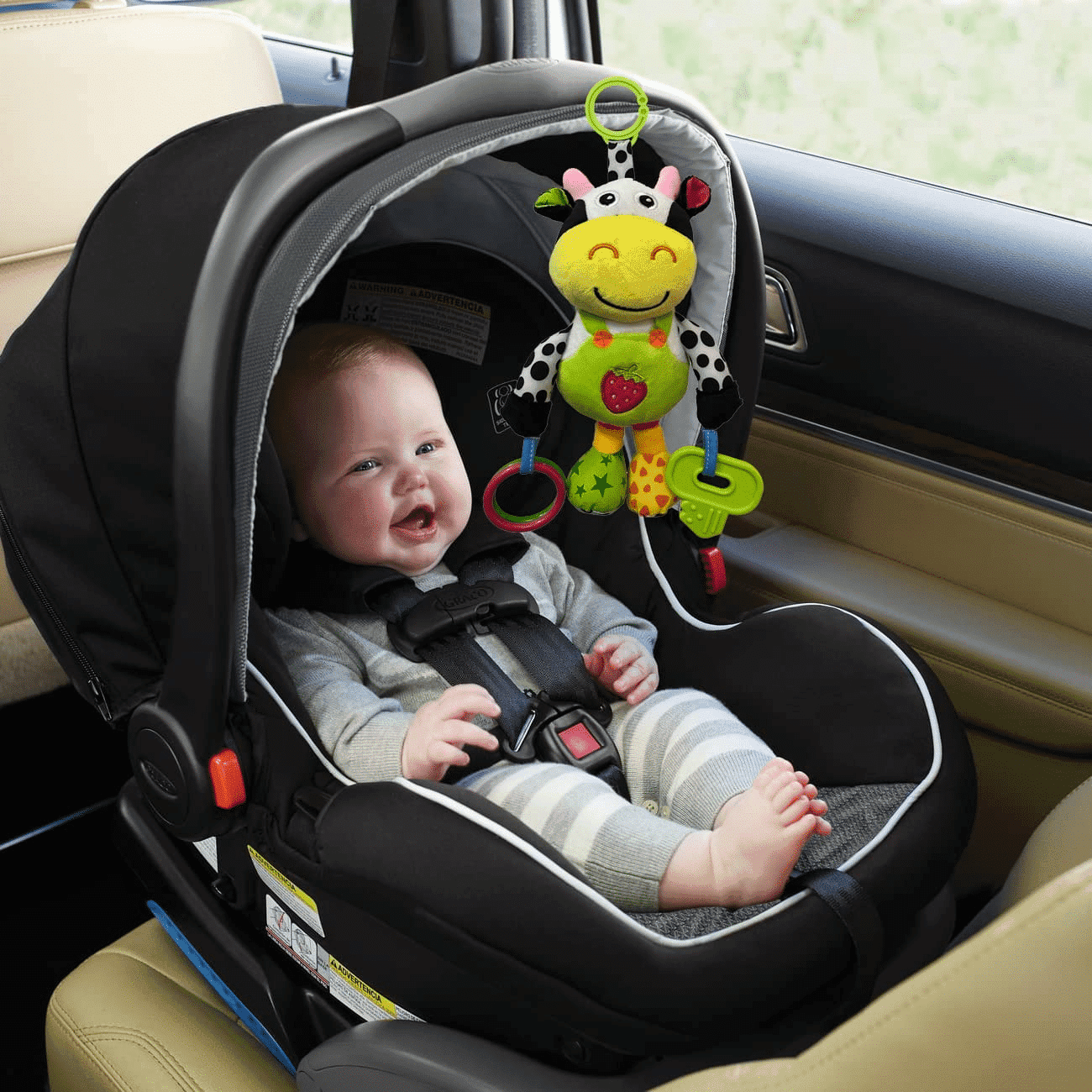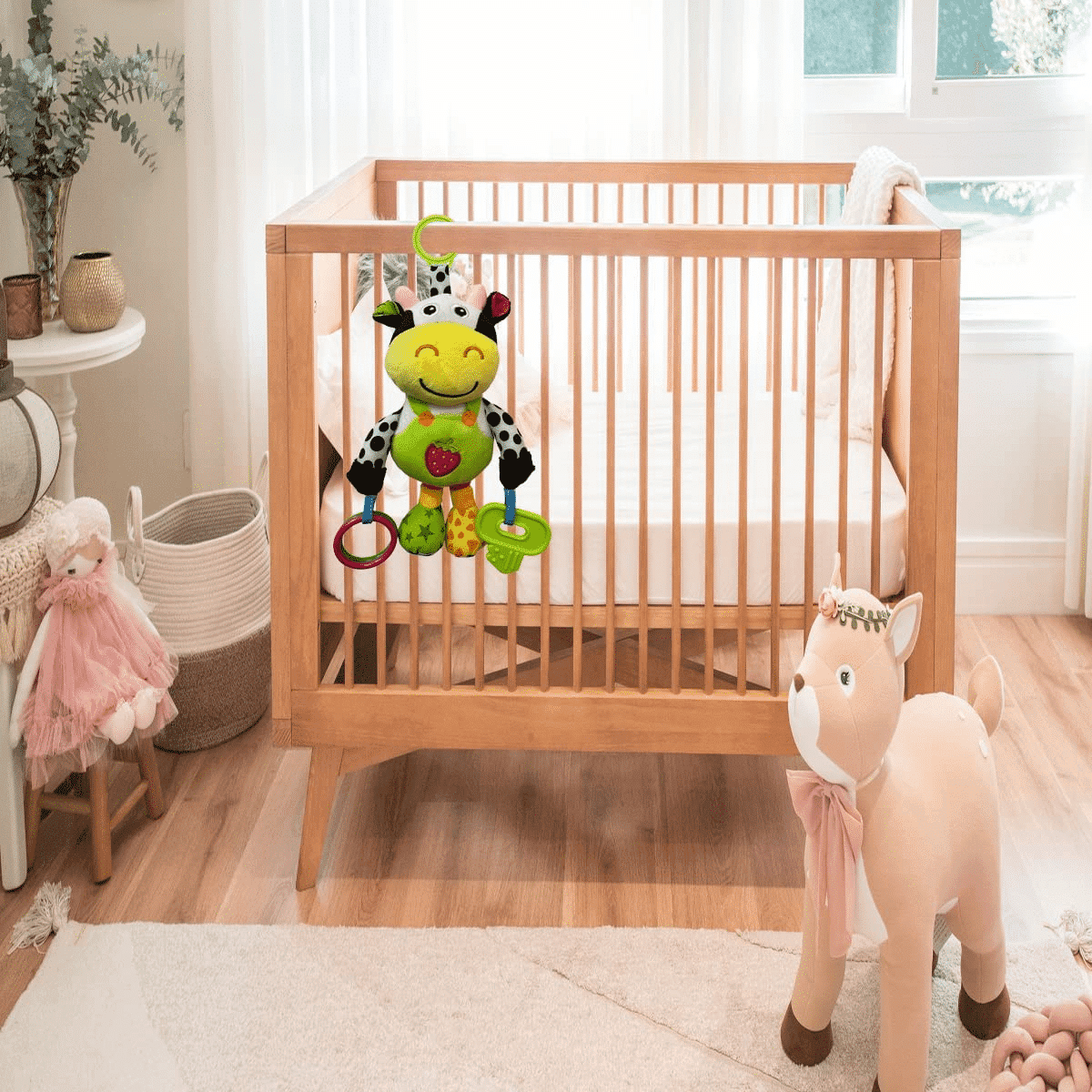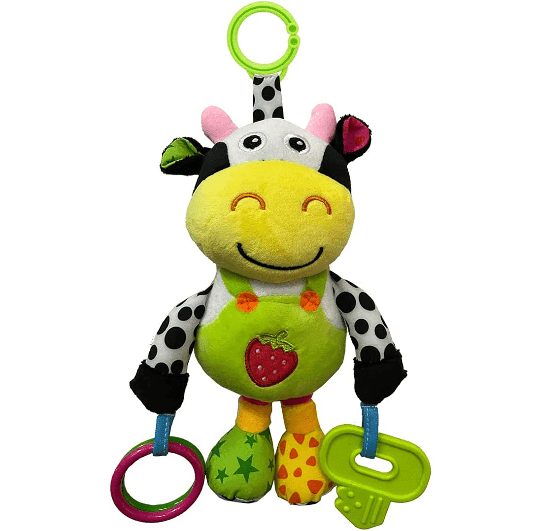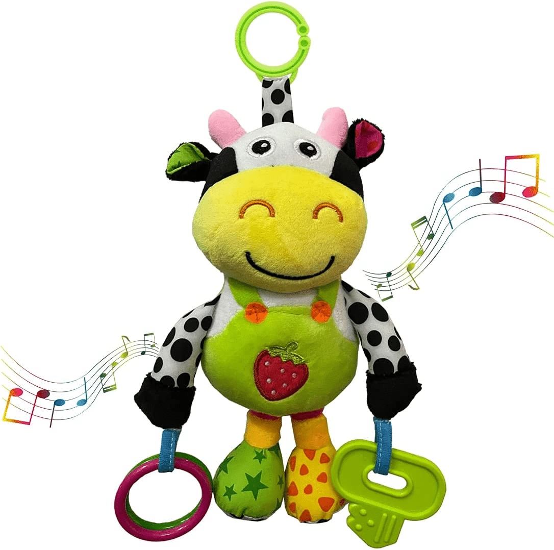 Jucarie Interactiva Bebelusi cu 24 de Melodii, Inel de Agatat, Accesorii Dentitie, Zornaitoare si Fosnaitoare, Vacuta de Plus, 30x15 cm, + 3 Luni, Utility One