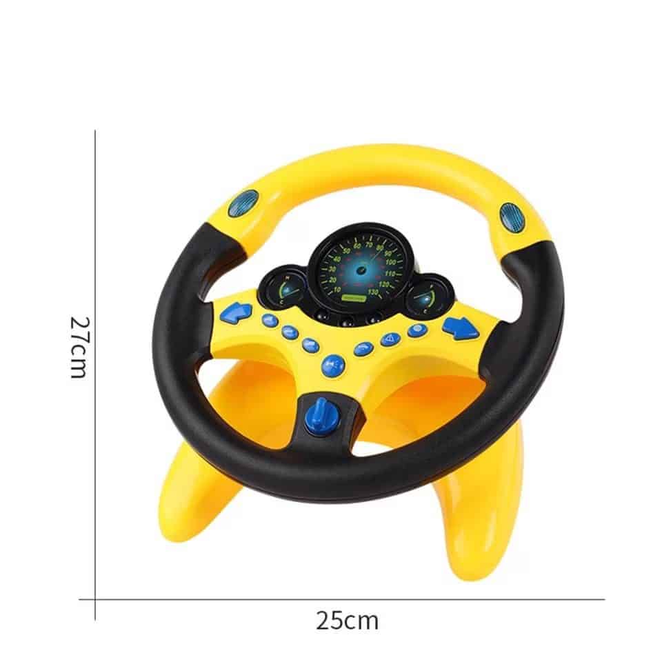 Ce dimensiuni are? Inaltime aprox. 27 cm, latime aprox. 25 cm, diametru volan aprox. 24.5 cm.