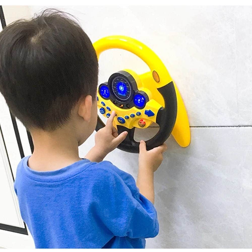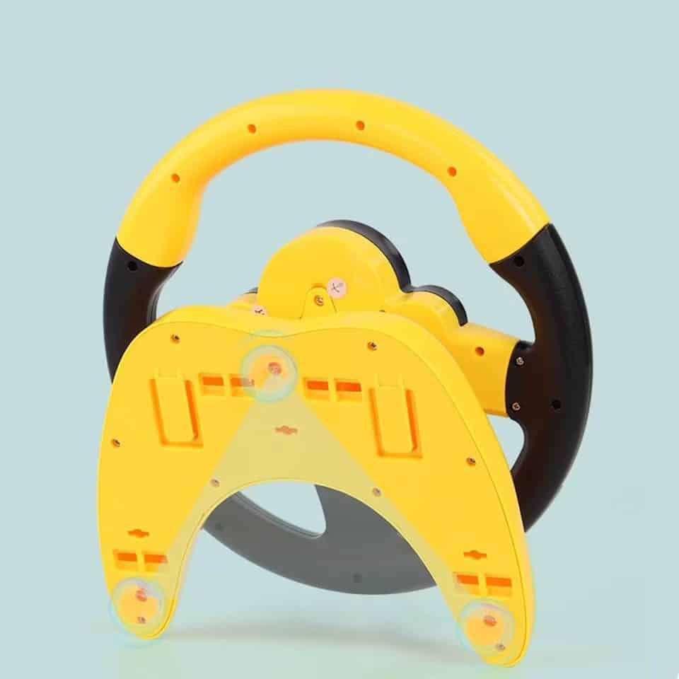 Volan Interactiv cu Sunete si Lumini, Simulator de Condus, cu Suport si Prindere Ventuze, Rotire 360 grade, Galben Negru, + 3 Ani